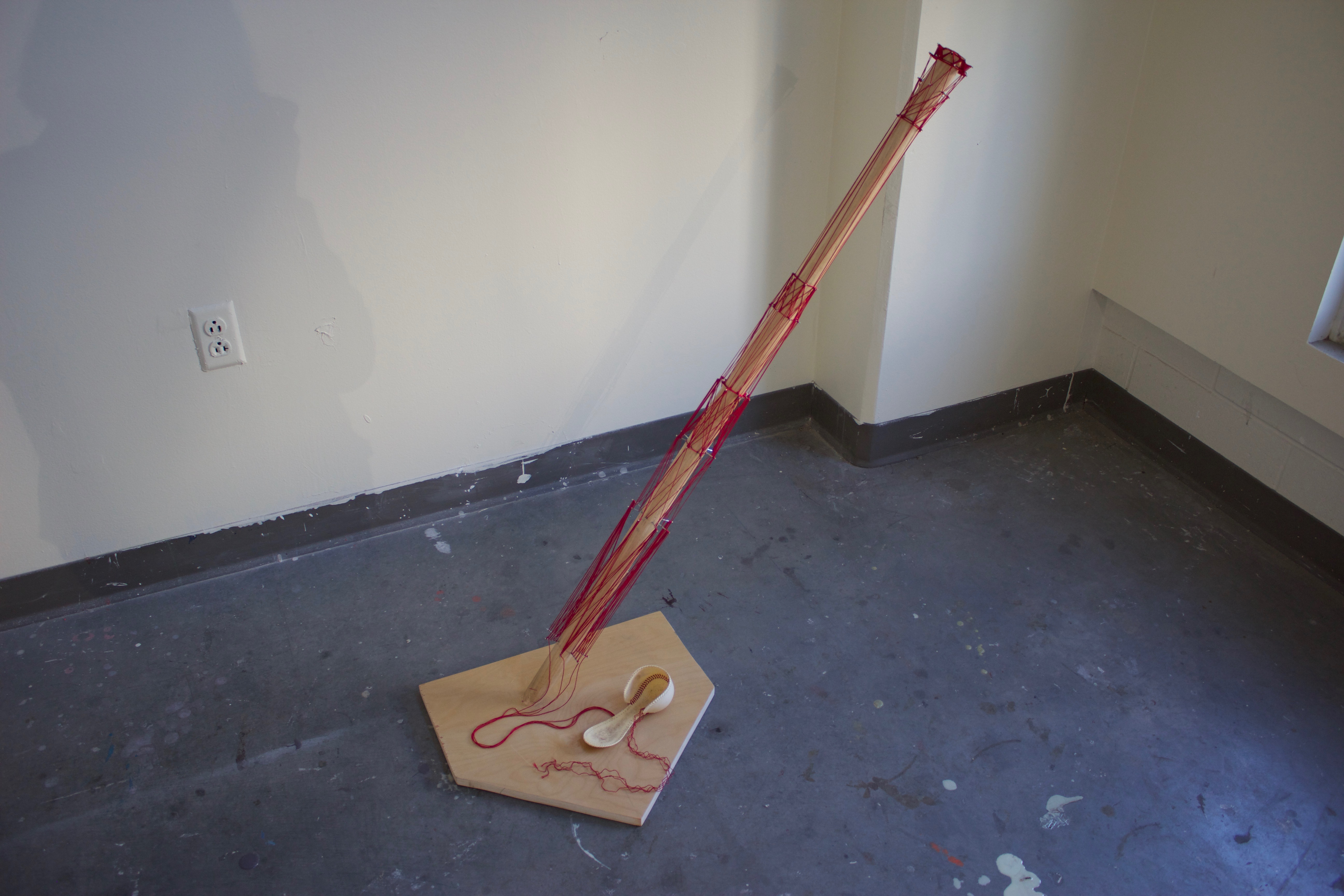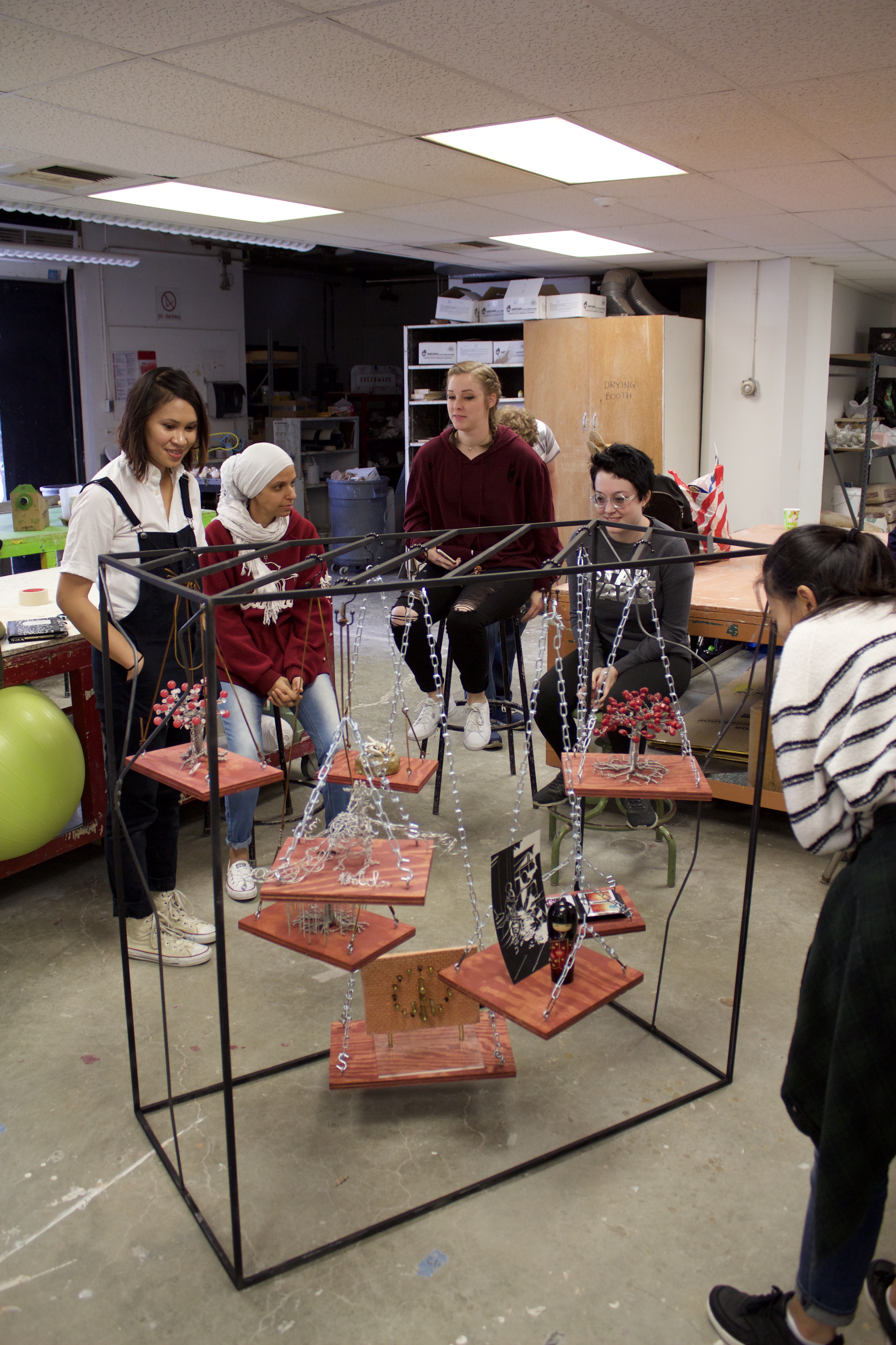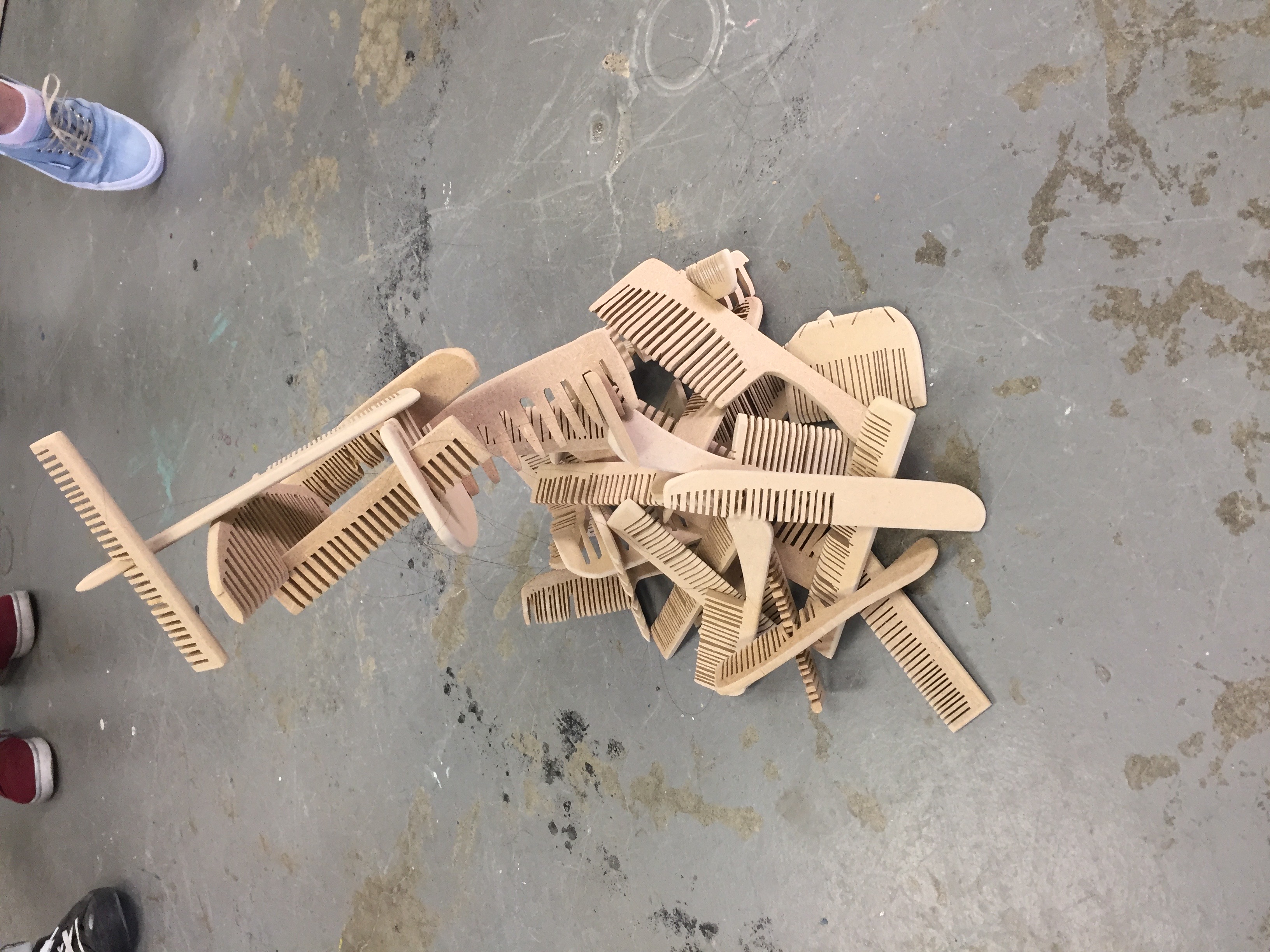 Students explored and developed techniques to manipulate wood through cutting and joining wood. They employed the learned techniques to create a sculpture that combined made objects to investigate how the accumulation transforms the meaning of a singular object.